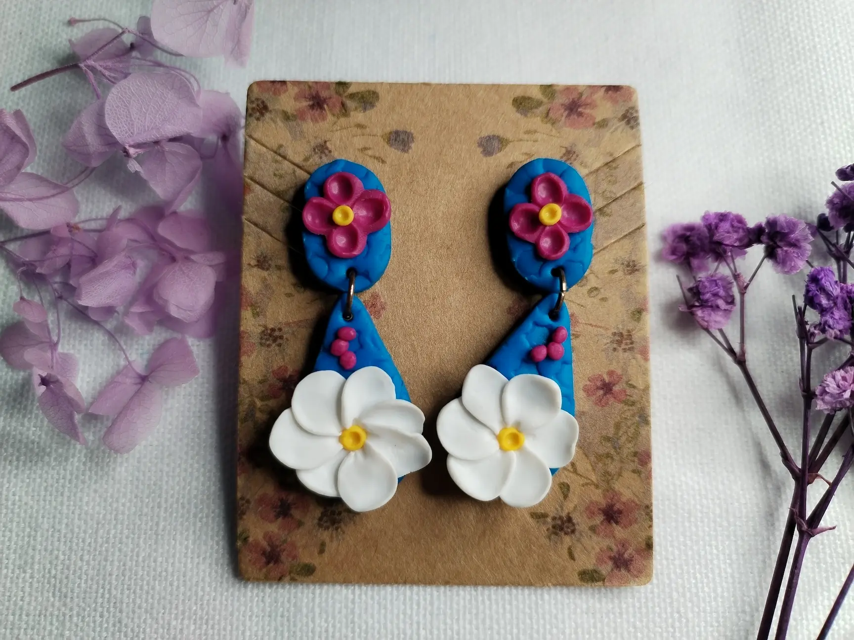 Jedes Paar wird sorgfältig von Hand aus hochwertigem Polymer Clay gefertigt. Die feinen Blütenblätter sind mit Liebe zum Detail modelliert und verleihen dem Design einen frischen, natürlichen Look. Dank der hypoallergenen Edelstahlstecker sind sie angenehm und sicher zu tragen – auch für empfindliche Ohren.