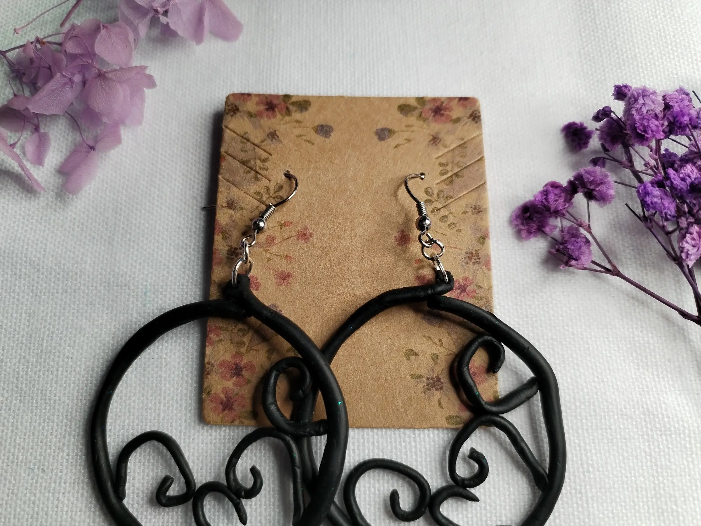 Whispers of the Forest – Handgemachte schwarze Ohrringe aus Polymer Clay